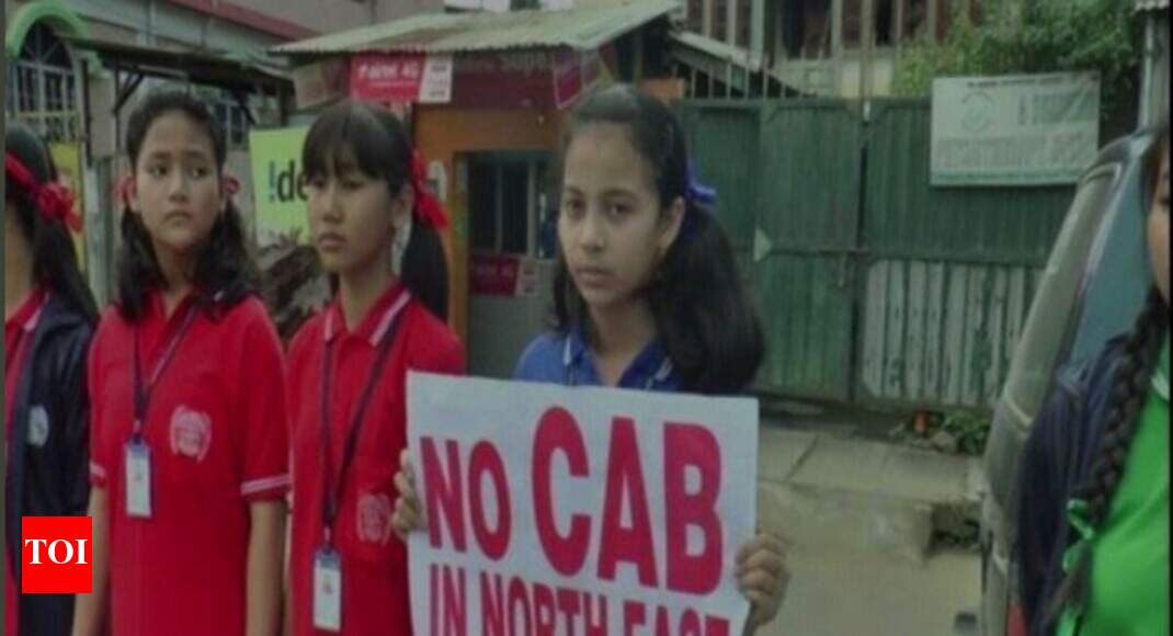 People were also seen holding placard which read "No CAB in North East" and "Withdraw CAB unconditionally".